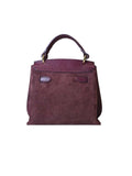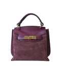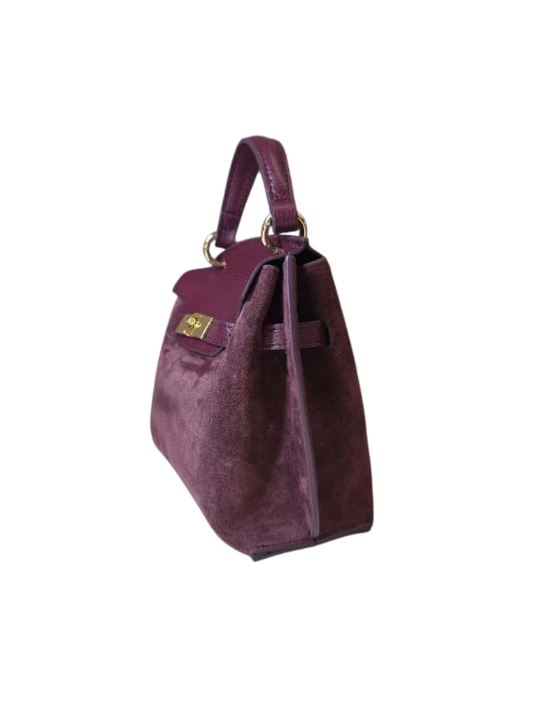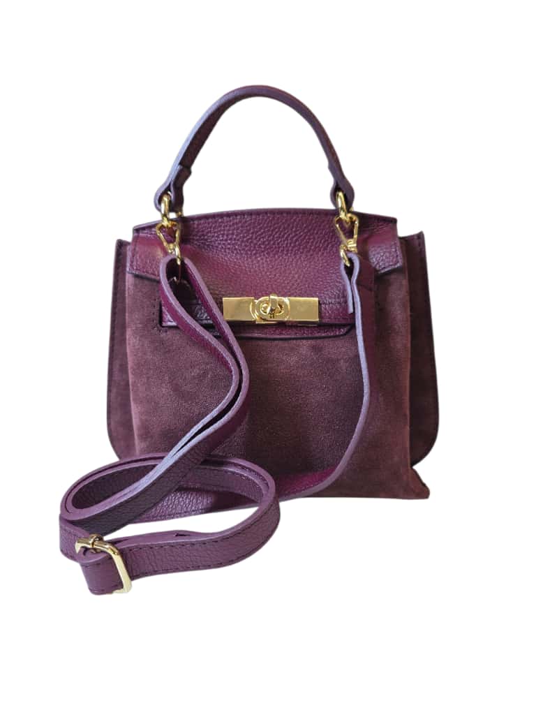 Borsa a mano bordeaux elegante in pelle e suede con finiture dorate e tracolla rimovibile