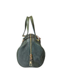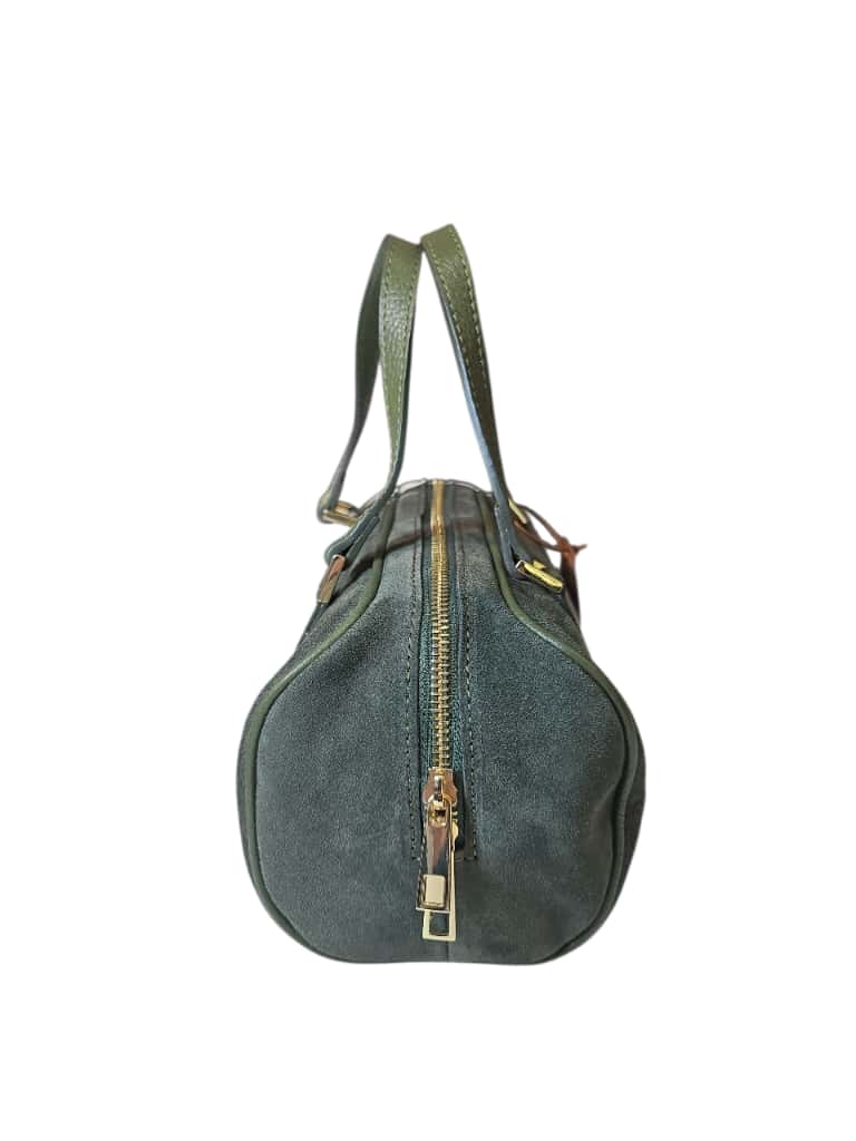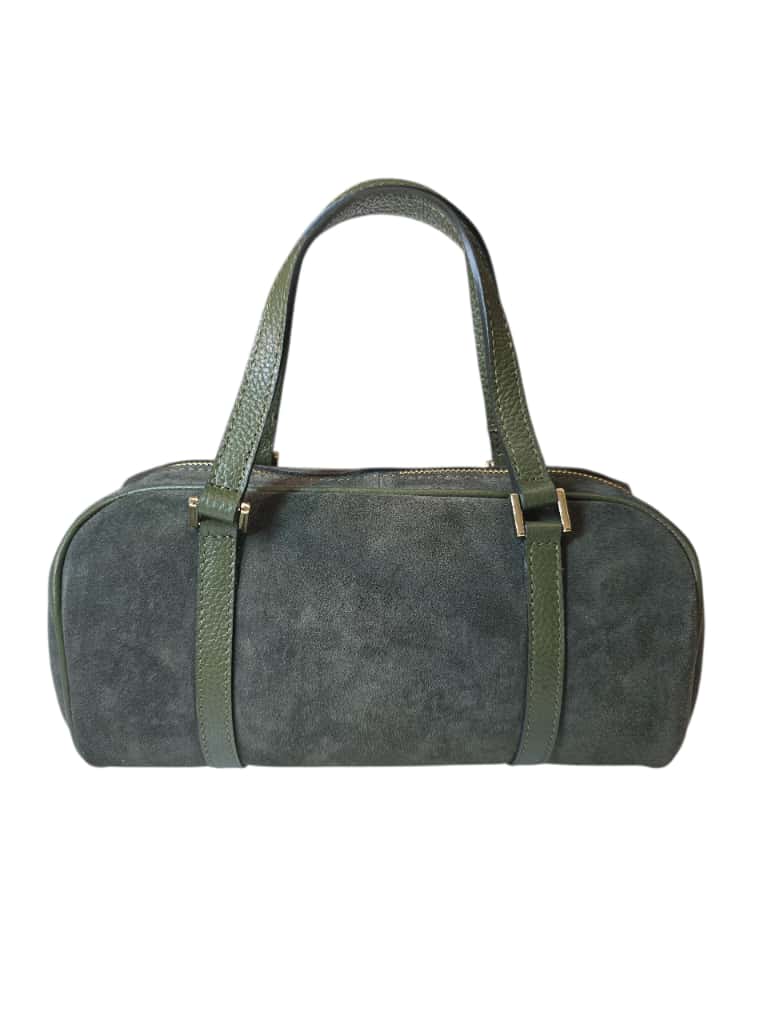 Borsa a mano e tracolla verde in pelle e suede con finiture dorate