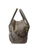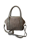Borsa a mano grigia in pelle e suede con doppio manico e tracolla rimovibile