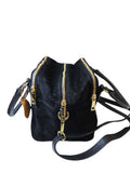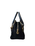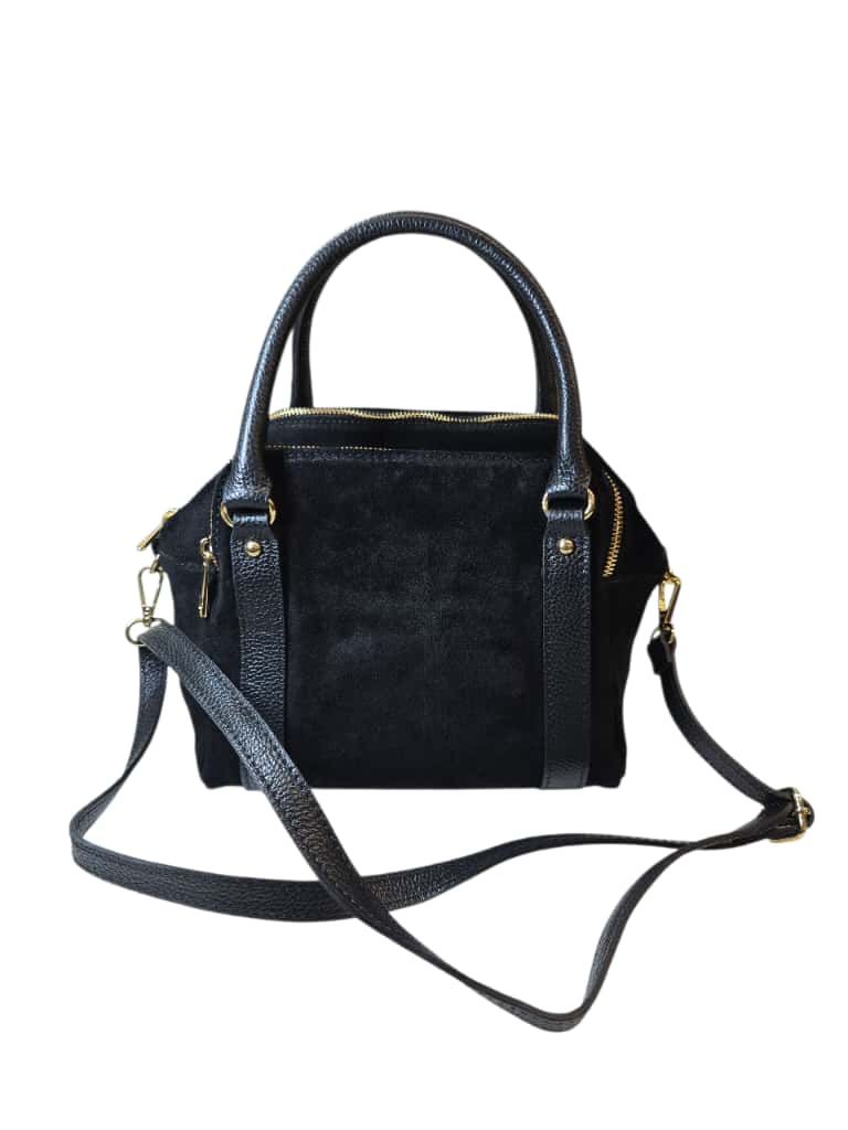 Borsa a mano nera in pelle e suede con doppio manico e tracolla rimovibile