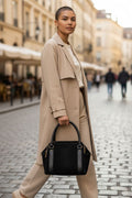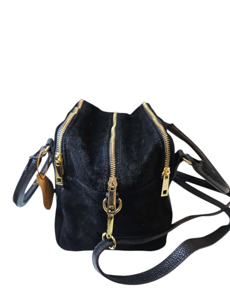 Classica, elegante e sempre attuale: questa borsa a mano nera in pelle e suede è l’accessorio indispensabile per ogni occasione. Il design morbido ma strutturato, arricchito da finiture dorate e chiusura a zip, combina raffinatezza e praticità. I doppi manici rinforzati e la tracolla regolabile e rimovibile la rendono perfetta sia per un look formale che casual chic.