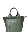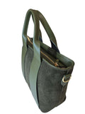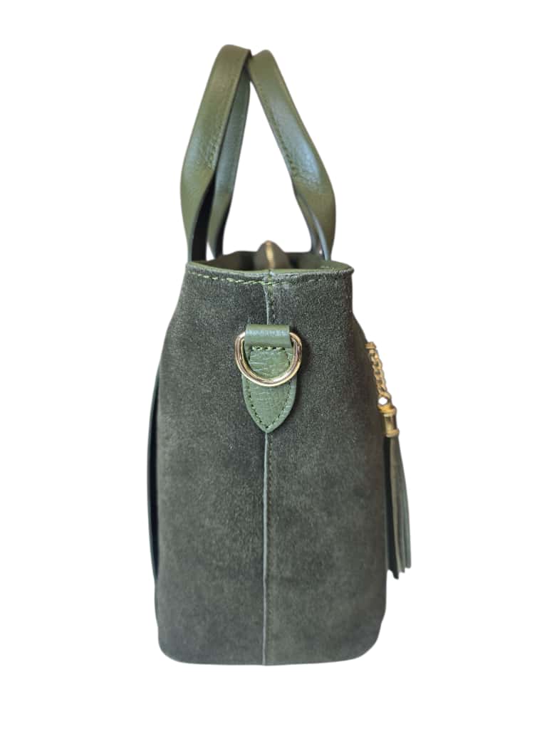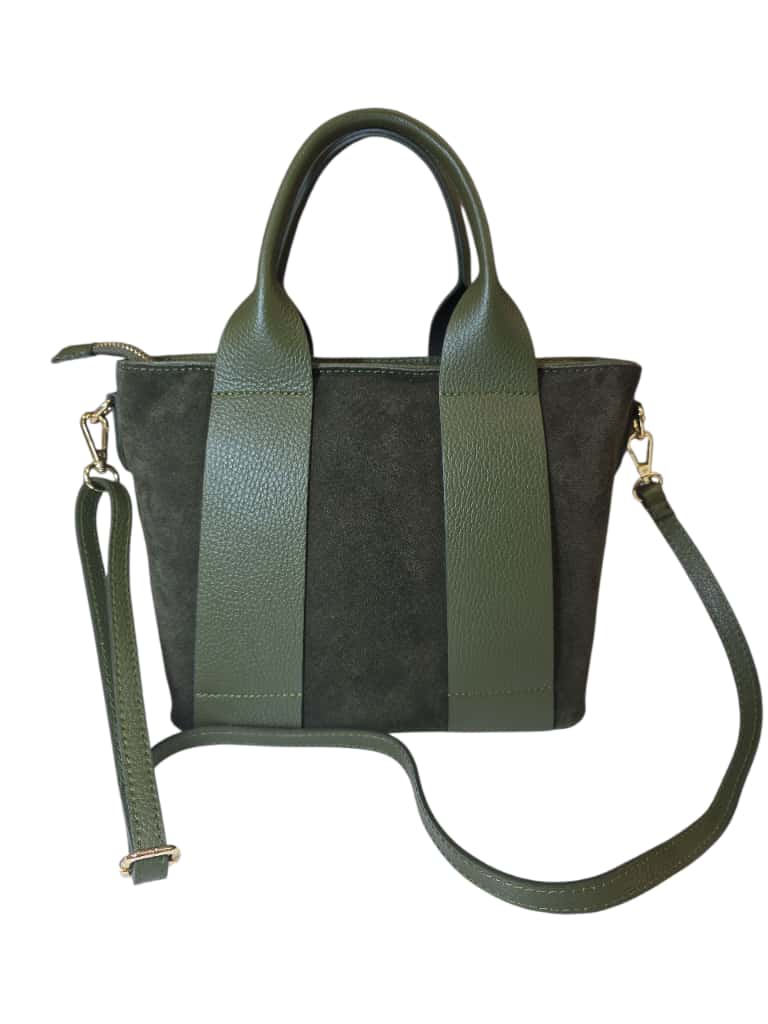 Borsa a mano verde in pelle e suede con doppio manico e tracolla regolabile