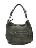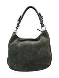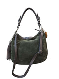 Borsa a spalla verde in suede con nappina e dettagli in pelle